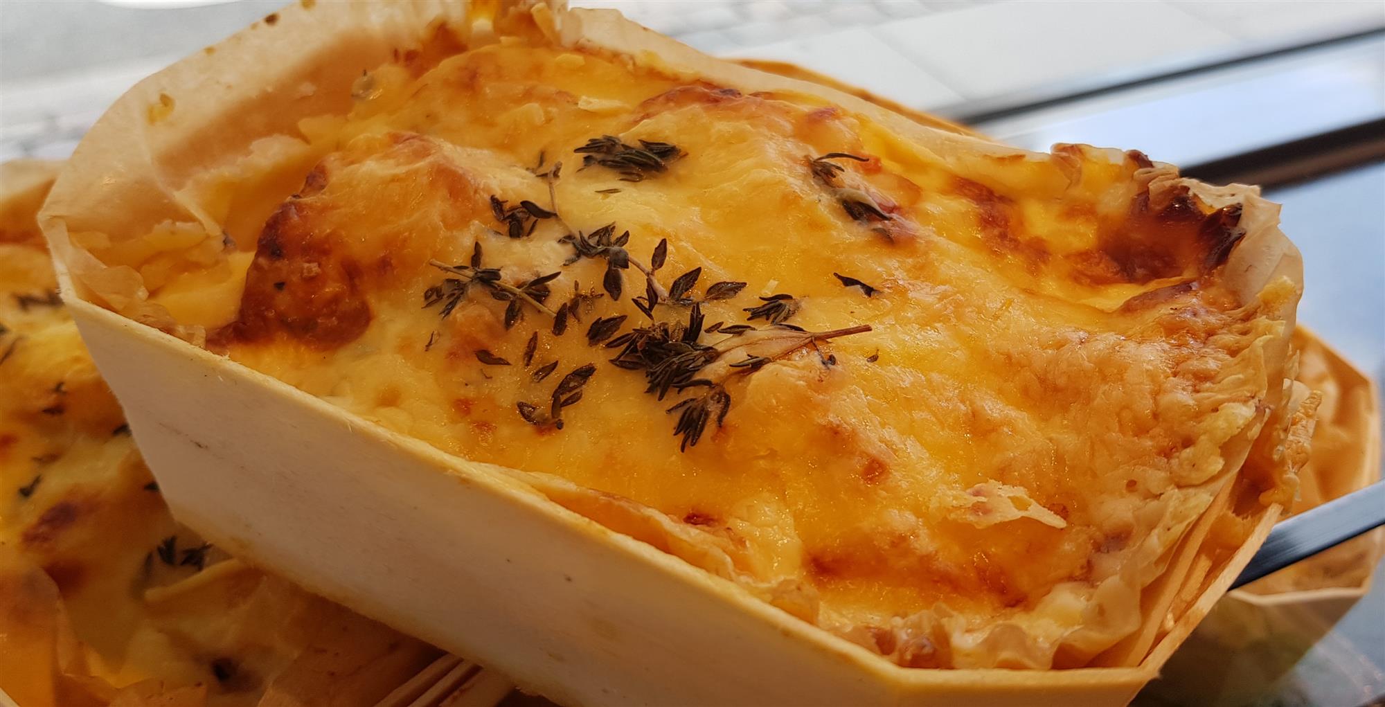 Flødekartofler med løg, peberfrugt og ost.