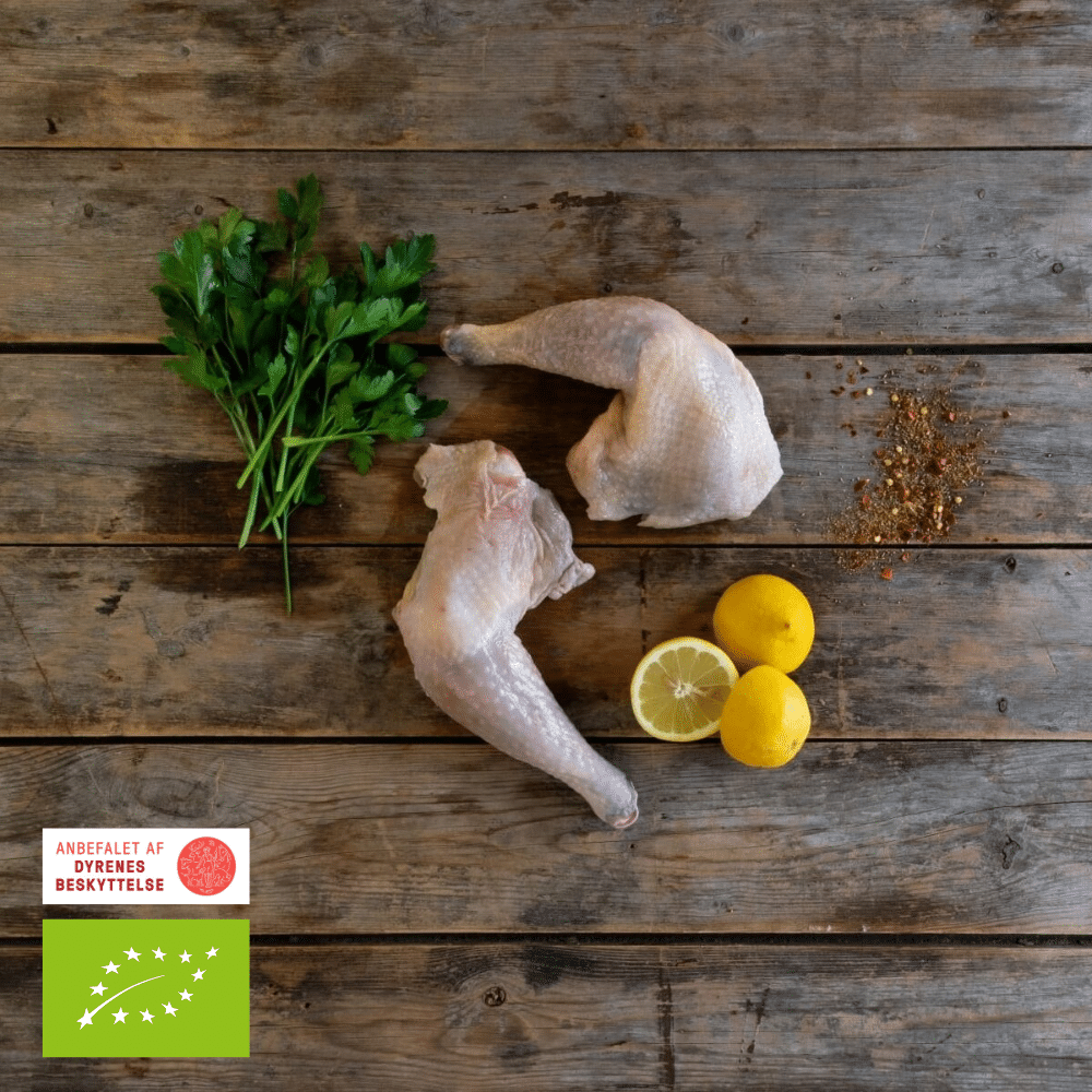 2 hele kyllingelår vejer ca. 700 g.