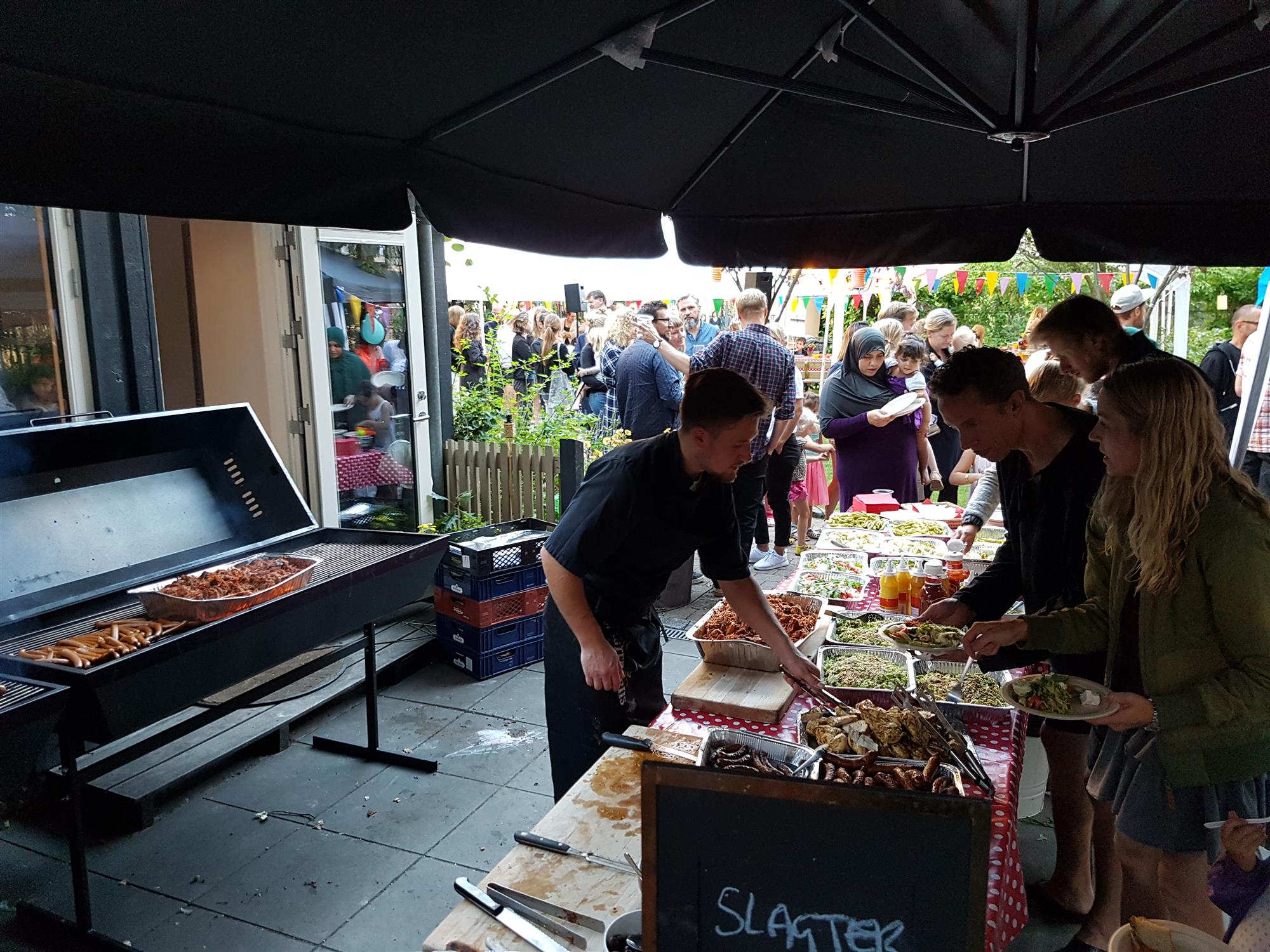 Skal vi grille for jer har vi brug for, 2 borde - til buffet og udskæring - samt et telt eller overdækning til grill og kok